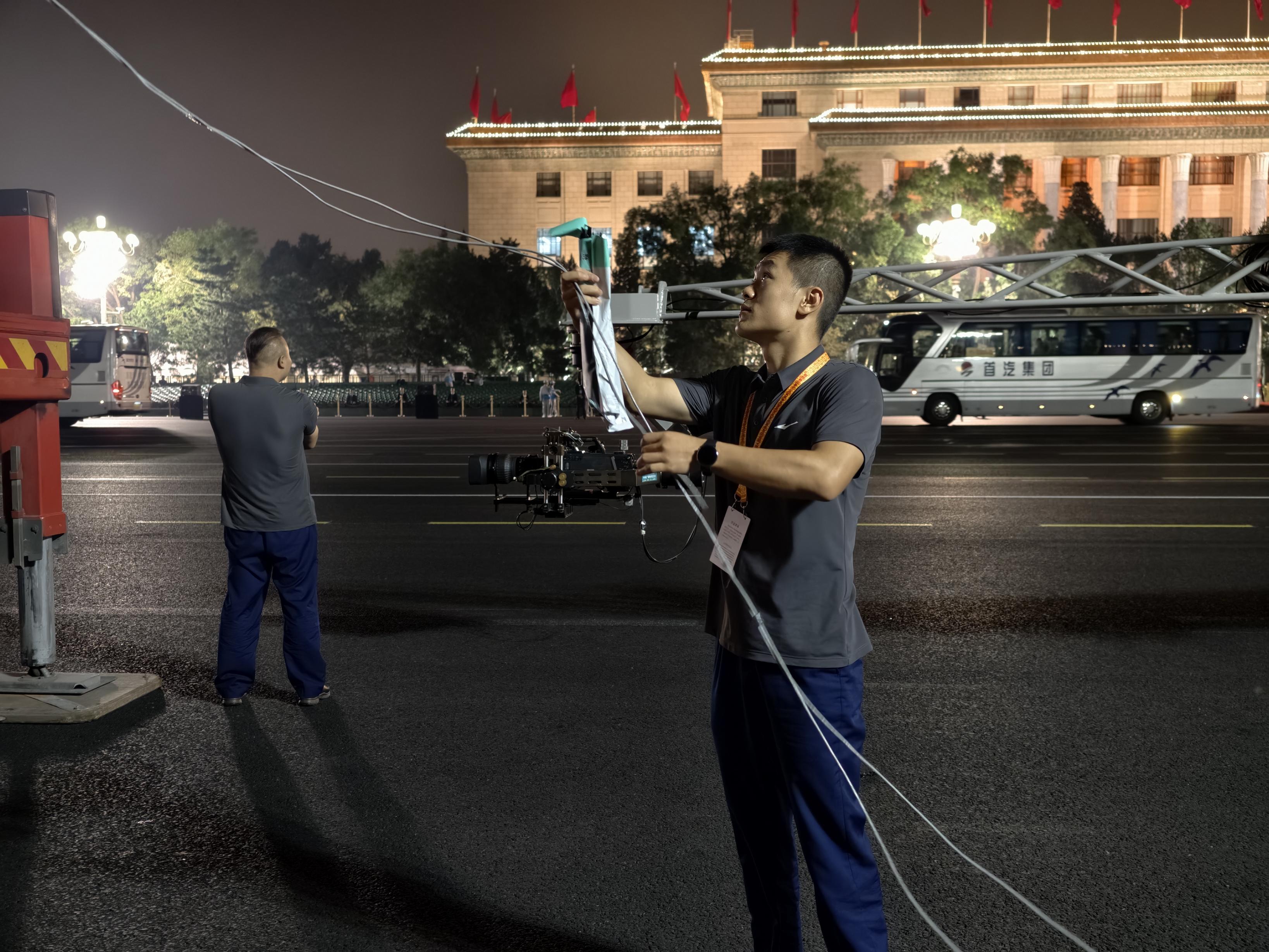 “我們的點位在中山公園南門前,不僅車身距離閱兵方隊‘零距離’,升空后的工作斗就在長安街上空,點位極為重要。”賈孝龍說,在前三次演練中聞喜,他們按照新華社記者的要求,不斷調整云梯車旋轉與伸展的角度,只為盡可能靠近長安街中線,確保最完美的拍攝效果。